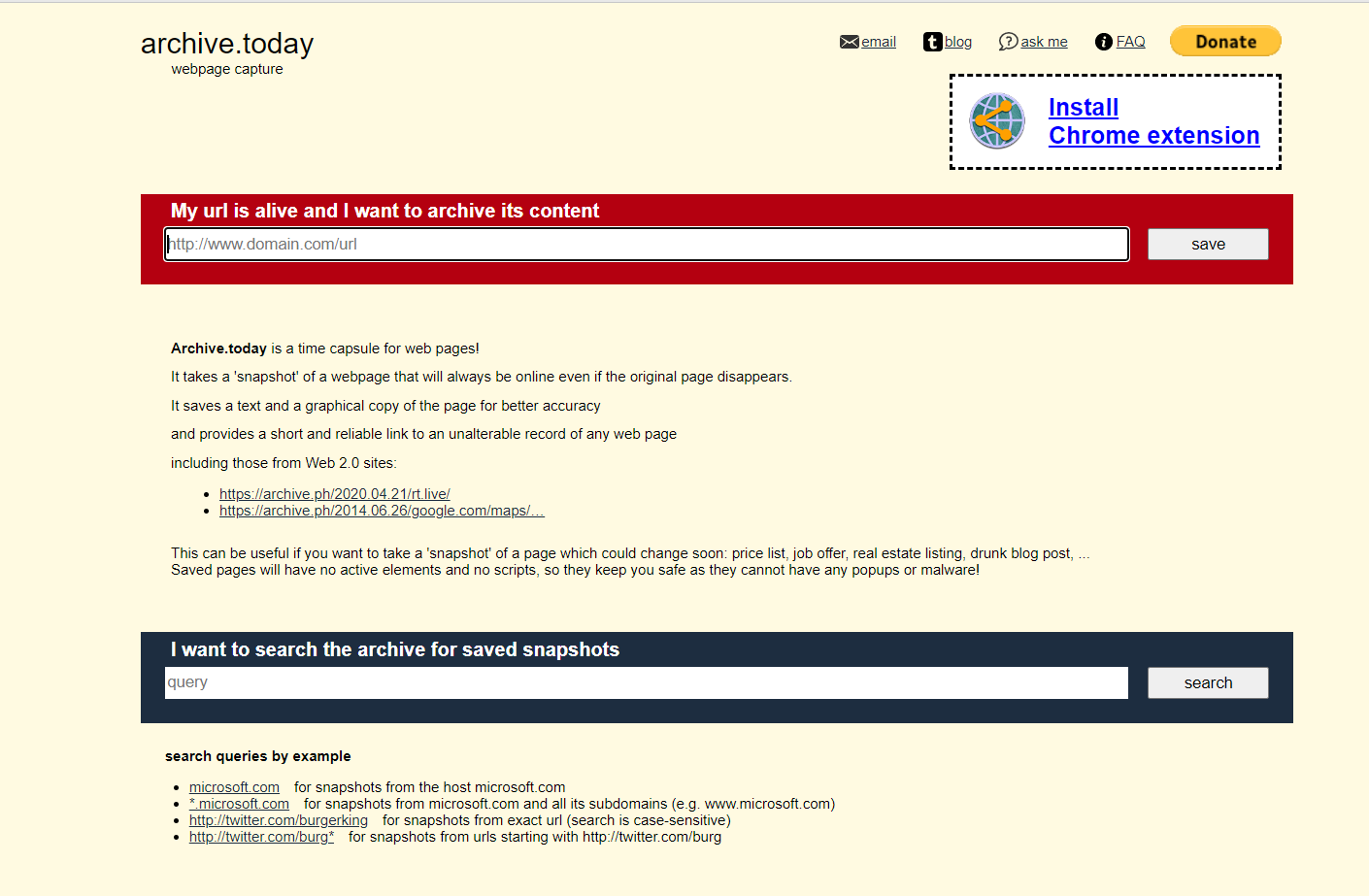 Archive.today is a popular, user-friendly tool that will give you quick and easy access to older versions of websites. You can search on the basis of the URL. A significant advantage of using Archive.today is that it gives you the provision to download the older version of the webpages as a ZIP file. You can easily share it with others.