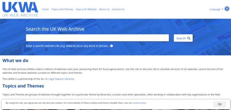 UK Web Archive (UKWA) is an extremely useful tool if you wish to view old versions of UK-based websites. The tool regularly saves and updates its list. It has an impressive collection and gives you convenience through its user-friendly search functionality. You can perform the search on the basis of phrase, keyword, and URL.