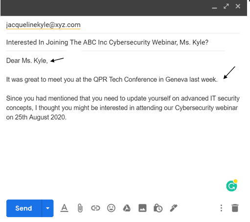 - Try to add references to any previous conversations or interactions you have had with the client. This will show that you value their business and are invested in building a relationship with them.