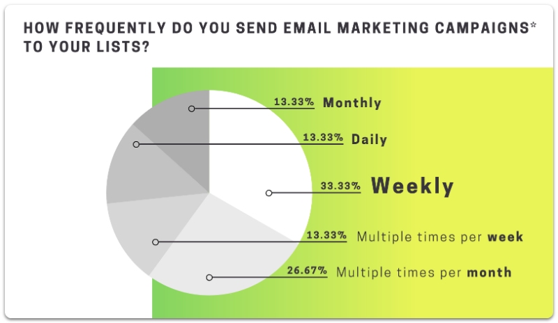 So, what’s a good email frequency? It varies by the type of campaign and audience, but once or twice a week is a good start. You won’t totally lose touch with your audience even if you drop back to once a month.