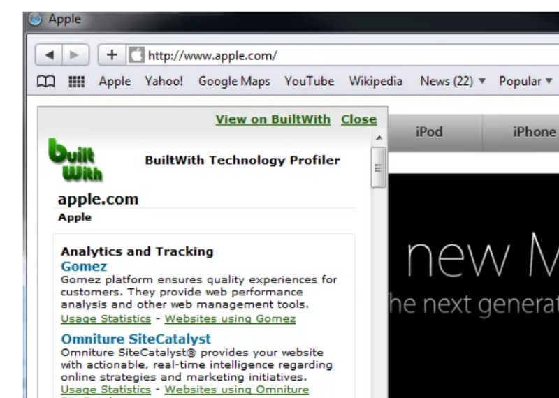 BuiltWith has been in the technology profiling field for quite a while now and is considered a pioneer. A popular alternative to Wappalyzer, it offers similar functionality in detecting the technologies used behind websites. Again, Wappalyzer also provides an extension that is compatible with Safari. With just a click, the user can understand the account technology profile and other information about the site's hosting, CDN. SSL certificate and many more.