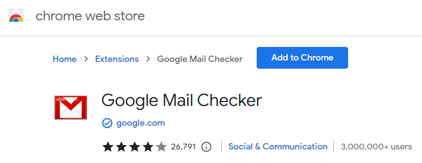 This extension displays the number of unread email messages in your inbox and provides a quick link to your Gmail inbox.