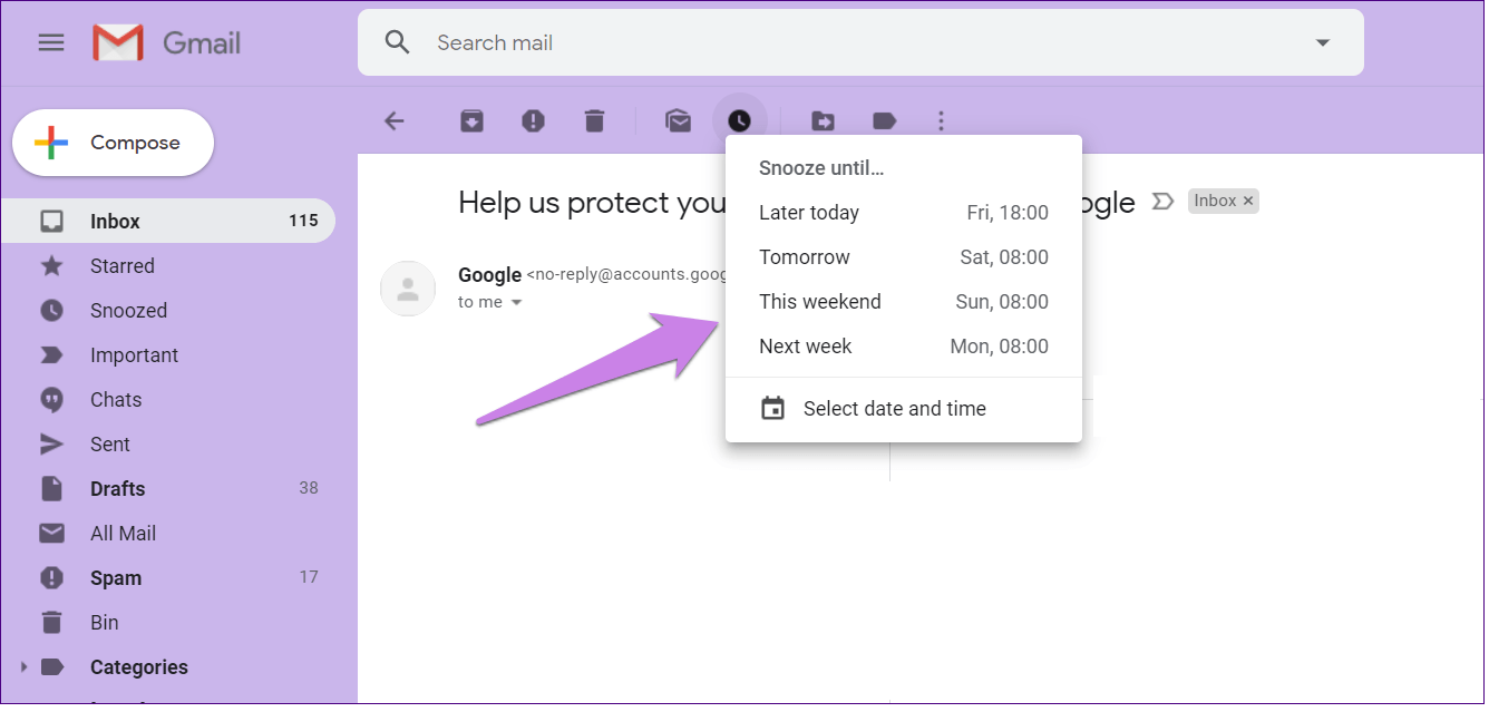 This extension allows you to snooze emails and receive notifications at a later time or date.